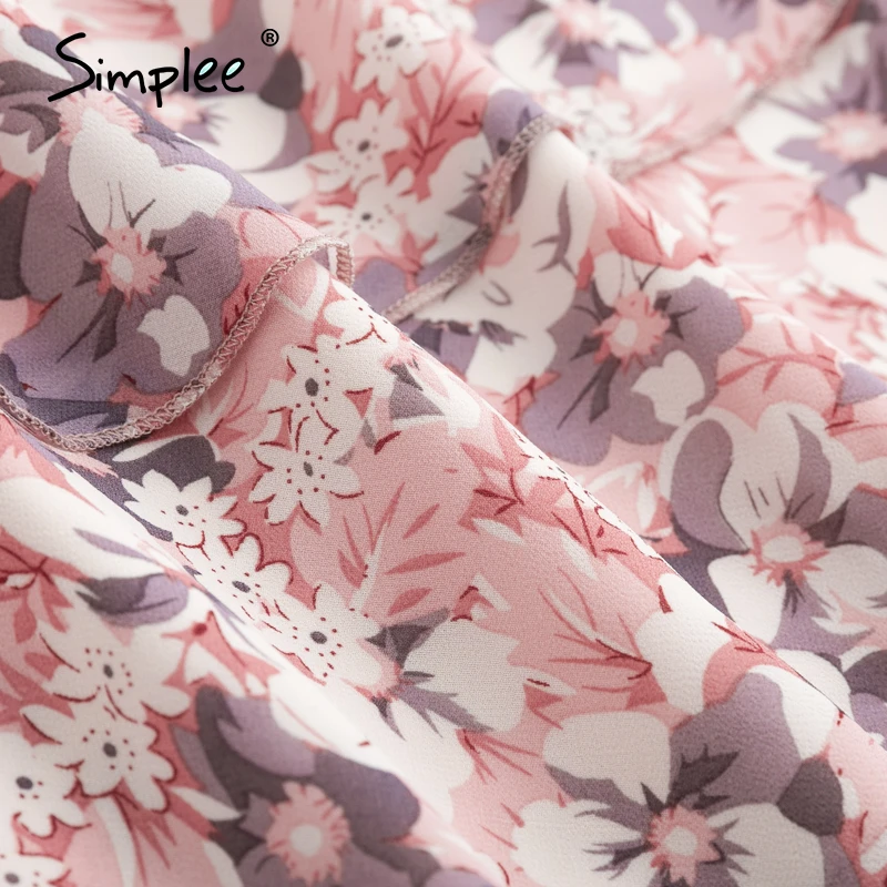 Get Simplee women floral print dress Elegant puff sleeve a-line chiffon sash dress High waist work wear office lady pink dress 2020 only US $20.02 just for today