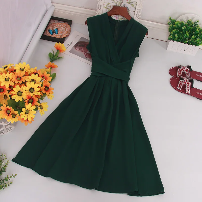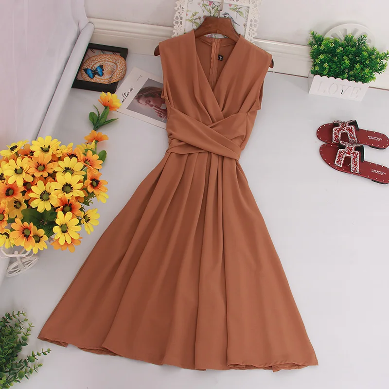Woherb Ladies Mid-long Dress Women Casual Tank Robe Summer Elegant Party Dresses Bandage Slim Waist Vestidos De Fiesta 22615